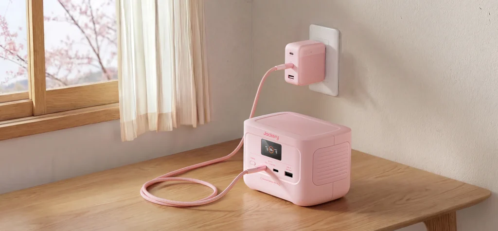 通常のJackeryはオレンジ系のカラーですが、このモデルはやわらかいピンク色になっています。