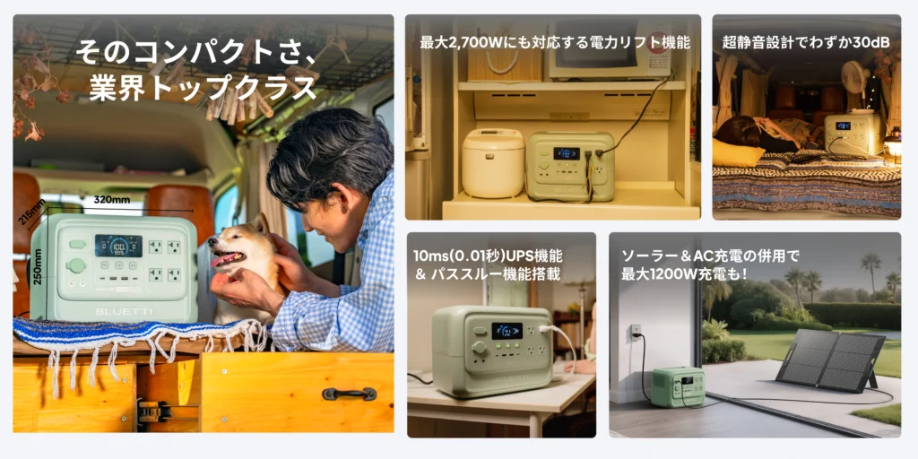さらに、BLUETTI独自の電力リフト機能(最大2,700W)により、起動時に大きな電力を必要とする家電も動作しやすくなっています。