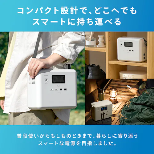 アイリスオーヤマ IPU-A280-Wは、288Whの小型ポータブル電源として、特に防災時の持ち運びやすさに強みがあるモデルです。