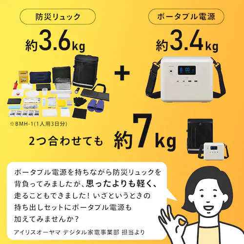 アイリスオーヤマの発表でも、災害時に持ち運びやすいよう両手を空けられる肩掛け対応が打ち出されています。避難時は荷物が多くなりやすいため、片手で持つだけでなく、ストラップで携行できるのは実用的です。