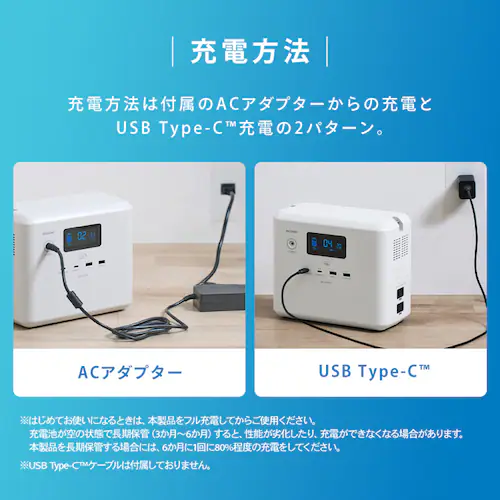- 充電方法:付属ACアダプター、USB Type-C経由